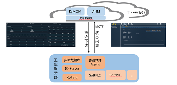 同时,工业服务器运行实时数据库及设备管理Agent,数据上云,实现KyMOM指令的上传与下达及工业服务器的云端管理(AHM),达成每个产品生产过程的可追溯性,实现数值化、信息化和智能化的生产。